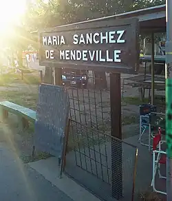 - ↑ Ledesma, Laura (Abril de 2018). «Juanita Simpson - Una gran mujer». Aldo Bonzi Hoy (Agencia Periodística Buenos Aires Hoy). p. 8. Consultado el 10 de diciembre de 2021. «Años más tarde, en 1942, el creciente asentamiento de pobladores en las inmediaciones llevó a Campion a subdividir y vender las tierras en 23 manzanas, que pasaron a denominarse Barrio Juan C. Campion. Y el mismo nombre se le dio a la parada del entonces ferrocarril Midland. Sin embargo, por motivos poco claros (algunos vecinos dicen que se debe a que los terrenos destinados al Ferrocarril habían sido donados por el Dr. Bonzi, y no por Campion), en 1946 se le impuso la denominación María Sánchez de Mendeville a la estación y el barrio pasó a adquirir el mismo nombre.»