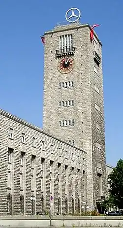 La Estación Central de Stuttgart es un edificio en cemento armado construido entre 1914 y 1928. El edificio tiene una torre de 56 metros de altura, sobre la cual se encuentra un símbolo giratorio de Mercedes Benz. El diseño arquitectónico es autoría de Paul Bonatz.