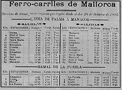 - ↑ «Serveis Ferroviaris de Mallorca (SFM) - Història». www.trenscat.com. Consultado el 21 de mayo de 2023.