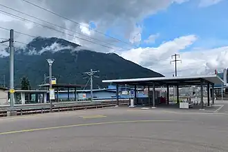 En términos ferroviarios, la estación se sitúa en la línea Zúrich - Pfäffikon SZ - Ziegelbrücke, conocida como la línea de la margen izquierda del Lago de Zúrich. Sus dependencias ferroviarias colaterales son la estación de Reichenburg hacia Zúrich y la estación de Ziegelbrücke donde se inicia la línea.