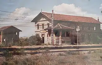El edificio para viajeros era un edificio de base rectangular y dos plantas con disposición lateral a las vías.[8] Estaba cubierto con un tejado de dos vertientes y sus paredes estaban revestidas de piedra y en menor medida ladrillo. Contaba con dos vías principales (vías 1 y 2) y dos vías derivadas (vías 3, 5). Dos andenes, uno lateral y otro central dan acceso a las vías. El cambio de andén se realizaba gracias a dos pasos a nivel. Tras el cierre al tráfico de pasajeros se suprimieron los cambios de vía y el acceso a los muelles de carga y las vías de apartado de vagones. Tras su abandono, el edificio sufrió los estragos del vandalismo hasta su controvertida demolición en 2005.[1]