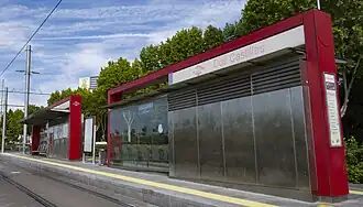 ![]() Vista general de las marquesinas situadas en el andén central de la estación. | ||
