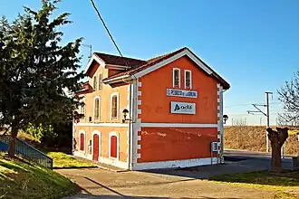 Se encuentra al oeste del municipio. El edificio para viajeros, de corte clásico, es una estructura de planta rectangular y dos alturas. Cuenta con dos andenes, uno lateral y otro central, al que acceden cuatro vías. Una de ellas como sucede en gran parte de las estaciones de este tramo concluye su recorrido en uno de los laterales del recinto.