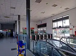 Se encuentra en el punto kilométrico 124,4 de la línea férrea de ancho ibérico Alcázar de San Juan-Cádiz.[1] El kilometraje toma como punto de partida la ciudad de Sevilla, ya que este trazado va unido a la línea Sevilla-Cádiz posteriormente integrada por Adif en la ya mencionada línea Alcázar de San Juan-Cádiz. El tramo es de vía doble y está electrificado.