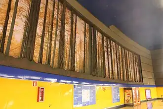 La estación está decorada con un mural metálico de 25×5 metros y una unidad 477 de los antiguos tranvías de Madrid.[4]