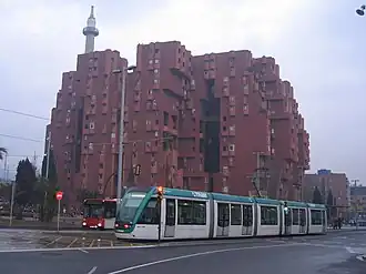 Edificio Walden detrás de un tranvía. | |||||||||