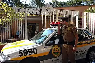 La Policía Militar del Paraná (PMPR) es fuerza auxiliar y reserva del Ejército Brasileño, y parte del Sistema de Seguridad Pública y Defensa Social del Brasil. Sus miembros son llamados de militares de los Estados.[11]