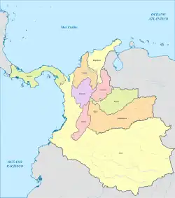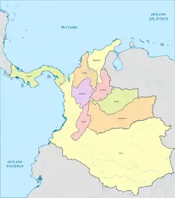 - Región Caribe, que se extendía por toda la costa y las sabanas del Caribe, desde la Guajira hasta el Urabá.