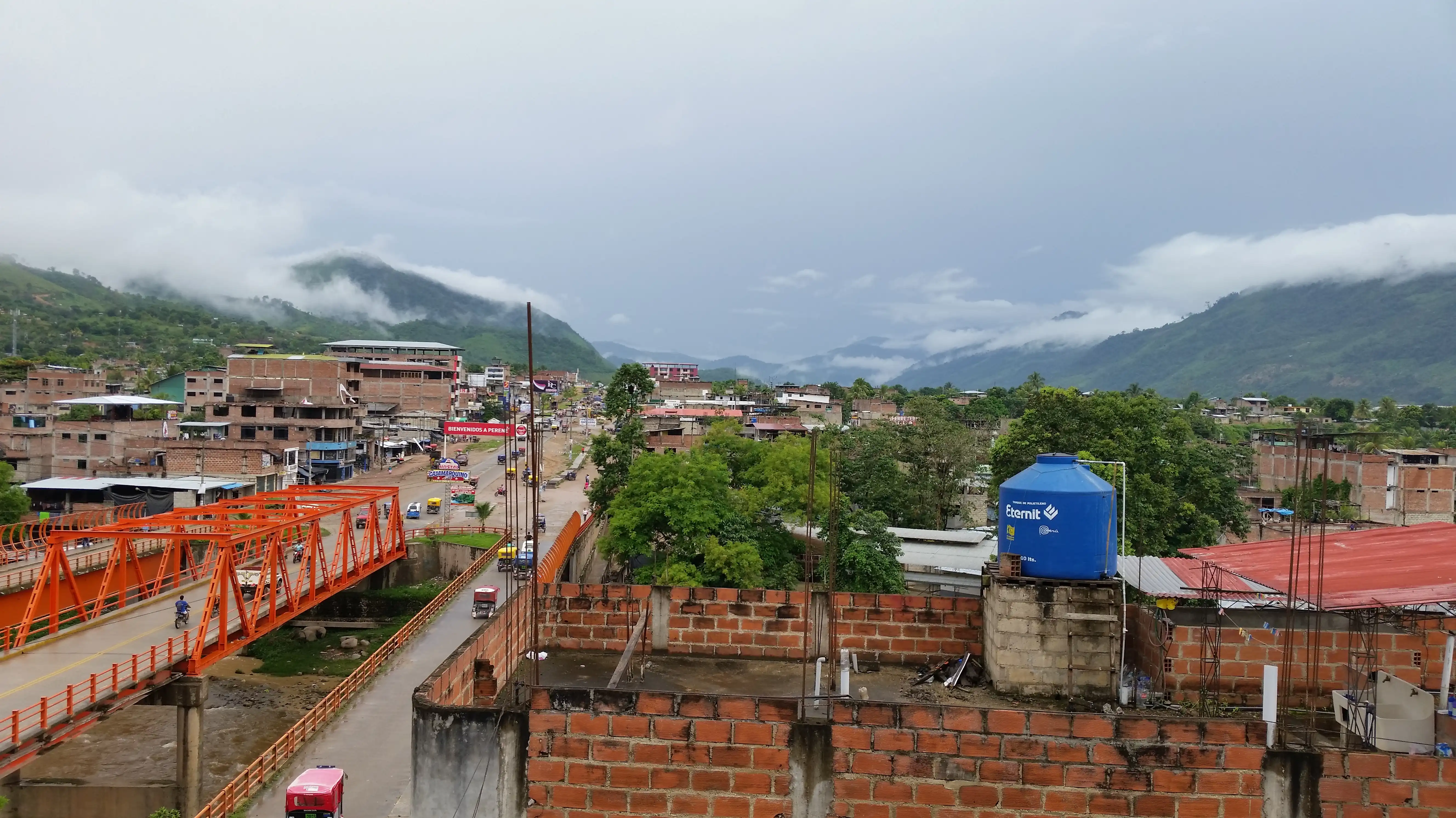 ![]() Puente sobre el Río Pichanaqui; al otro lado del río comienza el distrito de Perené. | ||||