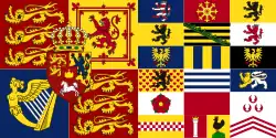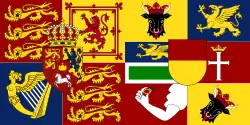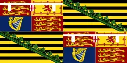 El estandarte real en Escocia diferenciado con un lambel de tres pies de plata, con un corazón de gules en el medio y una cruz de san Jorge en cada uno de los restantes. |