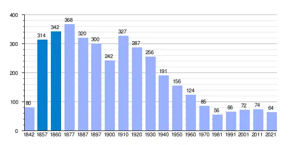 | Gráfica de evolución demográfica de Esterri de Cardós[3] entre 1842 y 2021 |