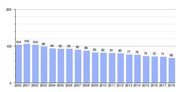 | Gráfica de evolución demográfica de Estrar entre 2000 y 2018 |