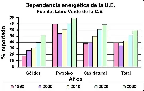 - ↑ a b «Energy consumption and production: EU27 energy dependence rate at 54% in 2006: Energy consumption stable» (PDF). Eurostat. 10 de julio de 2008. Consultado el 12 de septiembre de 2008.