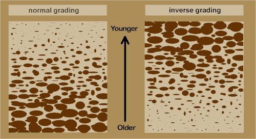 En entornos de deposiciones eólicas o hídricas, donde hay una disminución en la energía de transporte con el tiempo, el material del lecho se clasifica de manera más uniforme, de acuerdo con la escala de clasificación normal. A medida que el agua o el aire disminuyen, la turbidez disminuye. La carga suspendida de los detritos precipita. En tiempos de movimiento rápido, la ropa de cama puede estar mal clasificada en la superficie de deposición y, por lo tanto, normalmente no está clasificada debido al movimiento rápido del material. En canales amplios con pendientes decrecientes, el agua de movimiento lento puede transportar grandes cantidades de detritos sobre un área grande. Por lo tanto, las camas graduadas se forman en puntos con pendientes reducidas en áreas amplias con menos límites de flujos de corriente de energía. La energía se dispersa y disminuye. Los sedimentos turbosos precipitan en tamaños y formas concordantes en capas.[4]