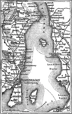 - Saltholm; isla utilizada para albergar enfermos de la peste negra y del cólera, más tarde siendo una fortaleza para defender Copenhague.