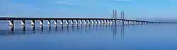 El puente de Øresund es un largo puente que conecta la capital danesa de Copenhague con la ciudad sueca de Malmö. El puente cuenta con dos líneas de tren y seis carriles para vehículos. Para su construcción se creó la isla artificial de Peberholm, donde el puente pisa una porción de tierra firme y se convierte en túnel. Fue inaugurado el 2 de julio de 2000.
