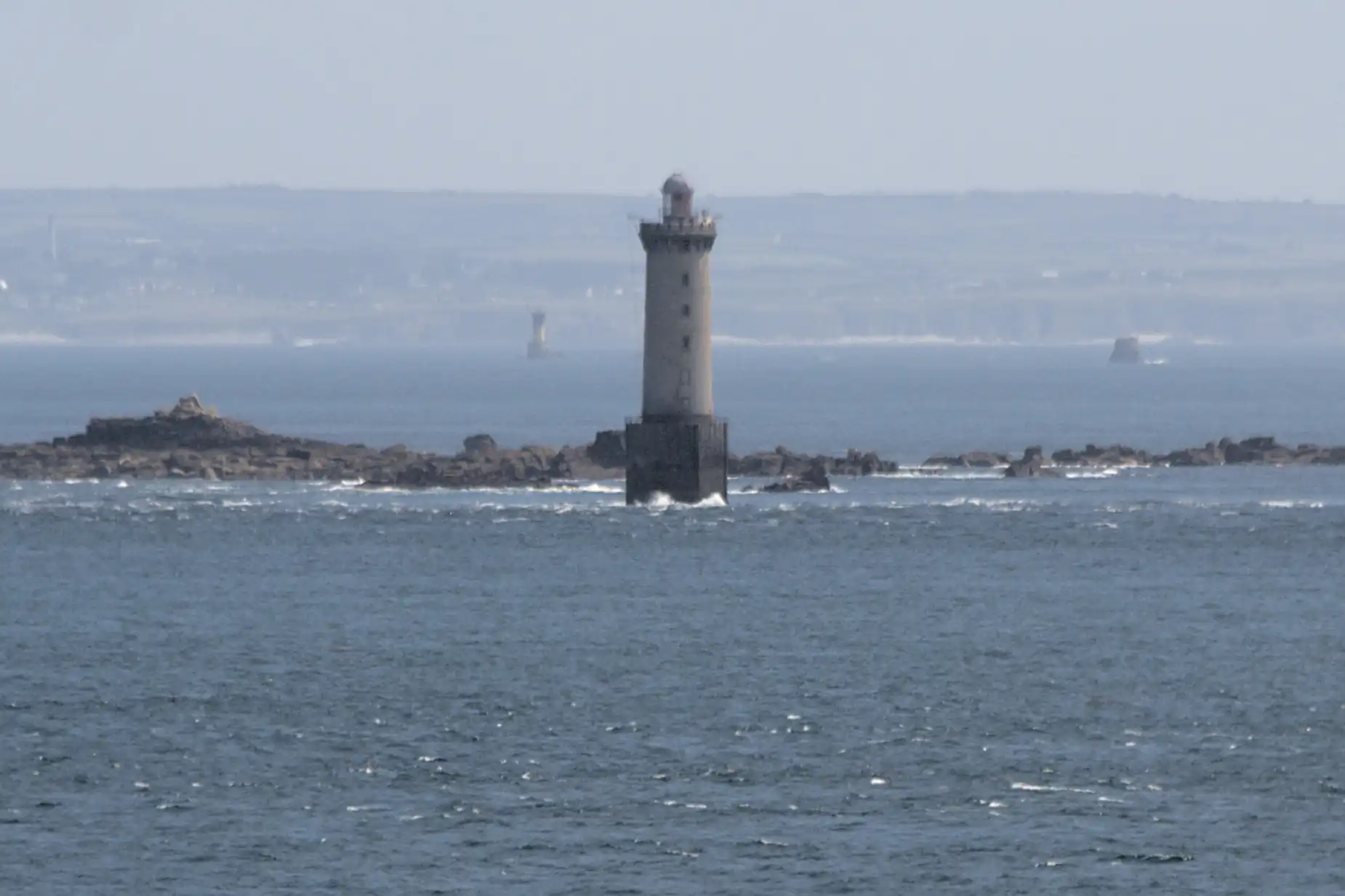 ![]() Vista del faro de Kereon desde la isla de Ouessant, en uno de los extremos del estrecho | ||