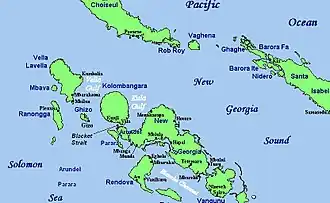 | Isla | Choiseul, Santa Isabel, islas Florida, Vella Lavella, Kolombangara, Nueva Georgia, islas Russell, Bougainville y Guadalcanal | |