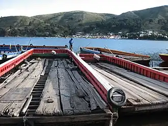 ![]() Barcazas cruzando el Estrecho de Tiquina. | ||
