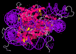 - ↑ Cutter, Amber R.; Hayes, Jeffrey J. (7 de octubre de 2015). «A brief review of nucleosome structure». FEBS letters 589 (20 Pt A): 2914-2922. ISSN 1873-3468. PMC 4598263. PMID 25980611. doi:10.1016/j.febslet.2015.05.016. Consultado el 19 de agosto de 2024.