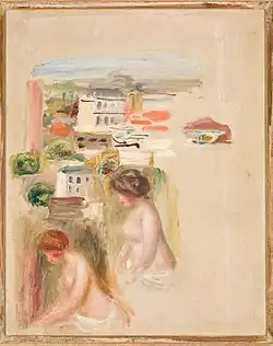 El boceto fue elaborado cuando el artista se trasladó a la región de Cagnes-sur-Mer al sur de Francia, en la que se establecería de forma definitiva en 1903.[2] La razón fue que él y su familia buscaban mejores condiciones climáticas para la mejora de la salud del artista, pues Renoir sufría una crisis de reumatismo articular, enfermedad que aquejaría al artista hasta su muerte. Muy probablemente, debido a ello, es que tanto en los bocetos que realizó en esta época como durante las dos últimas décadas de su vida, regresaría a la estética impresionista que había abandonado y negado años atrás.[1]