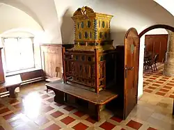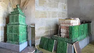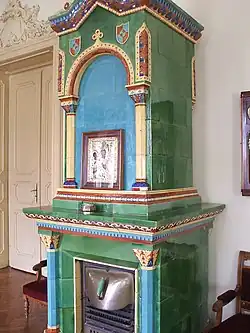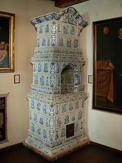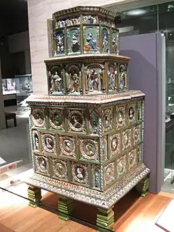 El "Kachelofen" alemán es un calentador doméstico relativamente grande rodeado de baldosas de cerámica, que existe durante al menos cinco siglos. Durante el período renacentista en Alemania, los constructores de estas estufas formaban parte de un oficio diferente y se llamaban Hafnermeister .[3] : 98