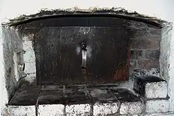 Una chimenea de ladrillo (del ruso: борова) en el ático, a veces con una cámara para el ahumado, es necesario para disminuir el enfriamiento de la estufa.[3]