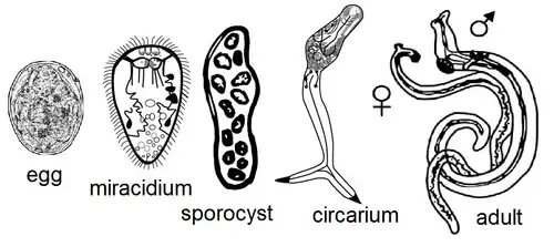 - ↑ a b «Schistosoma». Australian Society for Parasitology. Consultado el 19 de febrero de 2011.
