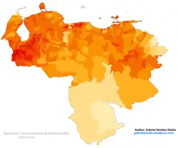 - ↑ a b Venezuelan population by 30/Jun/2014 is 30,206,2307 according National Institute of Stadistics