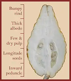 Un indicador más recientemente adoptado, aunque no tan ampliamente como los anteriores, es la orientación de la semilla, la cual debe estar apuntando verticalmente en un etrog, a menos de que esté constreñida por otras semillas del mismo fruto; en un limón y los híbridos de este, las semillas están posicionadas horizontalmente, incluso cuando no hay suficiente espacio.[8]