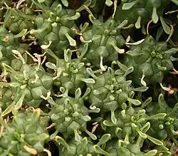 Es una planta que forma una masa como de cojín de 10 cm de alto y 40 cm de diámetro. Las ramas apretadas, suculentas, sin espinas, enterrada en el suelo y cubierta con el centro de la parte superior aplanada, con ramas de hacinamiento, que también están total o parcialmente enterradas en el suelo, con la edad se ramifican en las puntas y las ramitas nuevamente se dividen de una manera similar. El fruto es una cápsula, con semillas globoso-ovoides, de repente agudas, truncadas en la base, de color marrón oscuro.[1]