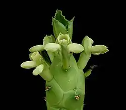 Es una especie suculenta con tallo cilíndrico y carnoso.