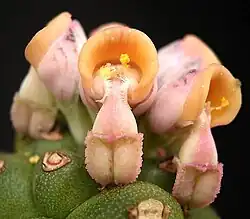 Se trata de una planta perenne con tallosuculento y con las inflorescencias en ciatios. Tiene un rizoma carnoso grueso, tallos erectos, decumbentes o rizomatosos, de hasta 40 cm de largo, 1,5-3 cm de grosor, mosaico, con prominentes tubérculos cónicos que llevan las hojas por lo general en 5 series en espiral.[2]