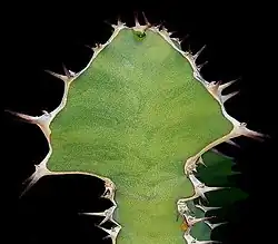 Es una planta suculenta, espinosa, erecta, arbusto ramoso, que está ramificado desde la base, alcanzando un tamaño de ± 1 m de altura;
