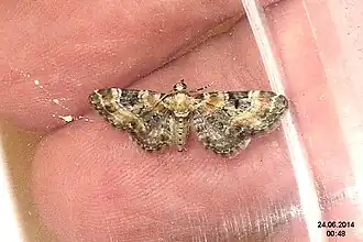 - ↑ a b c d Riley, Adrian; Prior, Gaston (25 de octubre de 2021). British and Irish Pug Moths – a Guide to their Identification and Biology (en inglés). BRILL. pp. 45-46. ISBN 978-90-04-47545-8. Consultado el 30 de marzo de 2025.