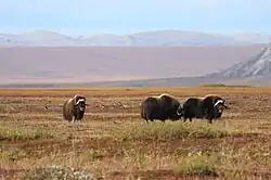 - ↑ JORGE ESTÉVEZ ESCALERA (1978). «Primer hallazgo del buey almizclado (Ovibos moschatus, Zimmermann) en el pleistoceno peninsular». ACTA GEOLÓGICA HISPÁNICA t. XIII (1978), n.O 2, págs. 59-60.