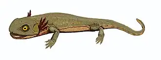 Se trataba de cuadrúpedos algo mayores que los existentes hasta el momento, con el cráneo más evolucionado en el que aparece ya el estribo articulado con el cuadrado, situado junto al tímpano; las fosas nasales se abren más cercanas al extremo del hocico; el cuerpo aún sigue manifestando la depresión dorsoventral típica de sus ancestros.