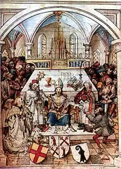 - ↑ Glauser, T.: 1352 – Zug wird nicht eidgenössisch, Archivo estatal del Cantón de Zug; Tugium 18, pp. 103-115; 2002. (fichero PDF, 359 KB; en Alemán).