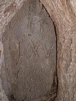 La inscripción de la fecha indicaba la fecha de llegada y la fecha de salida «DEC-6-60» (6 de diciembre de 1860) tallada sobre «APR-21-61» (21 de abril de 1861). La inscripción del número del campamento muestra la «B» inicial (por Burke) tallada sobre los números romanos para (campamento) 65; «B» sobre «LXV». La inscripción exacta «DIG» que Brahe talló no se conoce. Se recuerda de varias maneras, como «DIG under» o «DIG 3 FT N.W.» (cava 3 pies [1 m] al noroeste) o «DIG 40 FT N.E.» (cava 40 pies [unos 13 m] al noreste) o «DIG 21 APR 61» o una combinación de estos.
