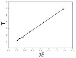 Si la relación tensión y longitud de onda al cuadrado expresada por la pendiente de la recta es;