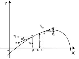 Melde supuso dos situaciones que sucedían en los ejes x e y. Él sugirió que en el eje x no hay desplazamiento de la porción de la cuerda y estableció la siguiente relación: