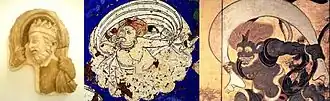 También el dios griego del viento Boreas se convirtió en el dios Wardo en el arte greco-budista, a continuación, una deidad del viento en China (frescos de la cuenca del Tarim), y finalmente el dios del viento japonés .