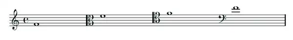 - En clave de do en tercera y en cuarta se sitúa respectivamente en el quinto espacio o en el primer espacio adicional sobre el pentragrama.
