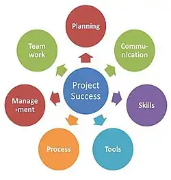 En la gestión de proyectos, numerosos estudios transculturales distribuidos a lo largo de décadas han mostrado que los principales factores clave de éxito son los siguientes:[7]