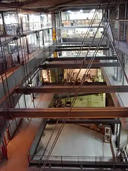 La construcción del edificio fue autorizada por la Ley N° 9.549,[4] del 27 de diciembre de 1935,[5] colocándose su piedra fundamental el 28 de mayo de 1938.[6] El proyecto era de 1936 y la edificación ubicada en el barrio de Parque Rodó, se inauguró parcialmente en 1945 y se terminó en 1953. Los trazados de las distintas fachadas de la construcción, muestran una simetría con el edificio principal de la represa y central hidroeléctrica Rincón del Bonete, también con intervenciones del arquitecto Vilamajó. Hubo decoraciones y espacios exteriores que nunca se concretaron. Destaca su icónica torre o "faro" localizado en el extremo norte del edificio, que originalmente fue construido como chimenea del Instituto de Máquinas.[7]