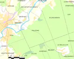 - Situación de Falletans en un mapa de Francia y de comunas limítrofes (enlace roto disponible en Internet Archive; véase el historial, la primera versión y la última). (en francés)