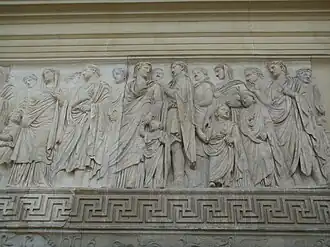 La familia en la Antigua Roma era una estructura social compleja cuya base era la familia nuclear. Solía tener una estructura patriarcal, con el pater familias a la cabeza, pero podía incluir varias combinaciones de miembros, como miembros de la familia ampliada, esclavos domésticos y esclavos liberados.[1] Los antiguos romanos tenían diferentes nombres para describir su concepto de familia, incluyendo «familia» para describir la familia nuclear y «domus» que habría incluido a todos los habitantes del hogar.[2] Los tipos de interacciones entre los diferentes miembros de la familia estaban dictados por los roles sociales percibidos que cada miembro desempeñaba. La estructura de una familia romana antigua cambiaba constantemente como resultado de la baja esperanza de vida y a través del matrimonio, el divorcio y la adopción.[3]