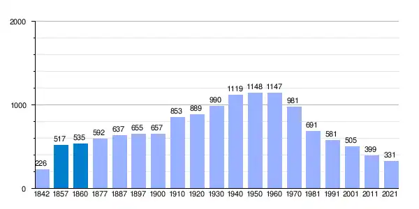 Población de derecho según los censos de población del INE Población de hecho según los censos de población del INEEn estos censos se denominaba Foramontanos: 1842 y 1857[12] |
