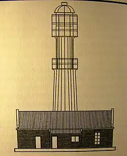 ![]() Torre tronco cónica (mampostería), franjas horizontales blancas y negras, tiene casa habitación | ||