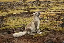 Entre los cánidos se destaca el zorro grizzly . Cuando Islandia fue colonizada en el siglo IX, este era el único mamífero terrestre en la isla y aún son comunes en toda Islandia.
